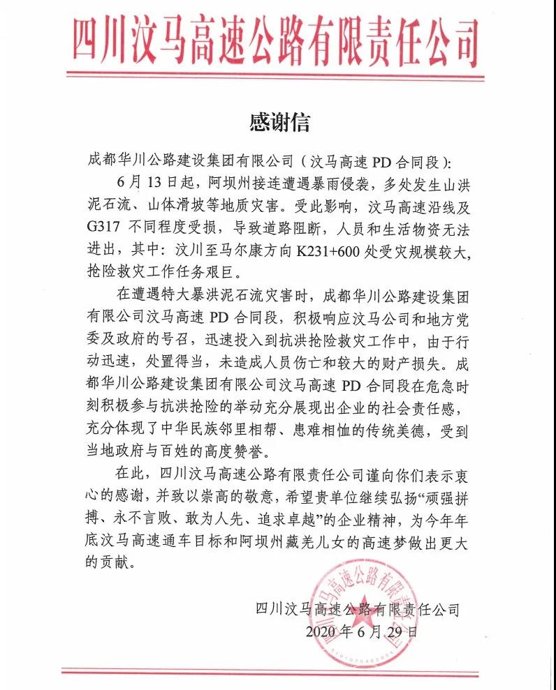馬爾康搶險救災(zāi)集團(tuán)榮獲高度評價