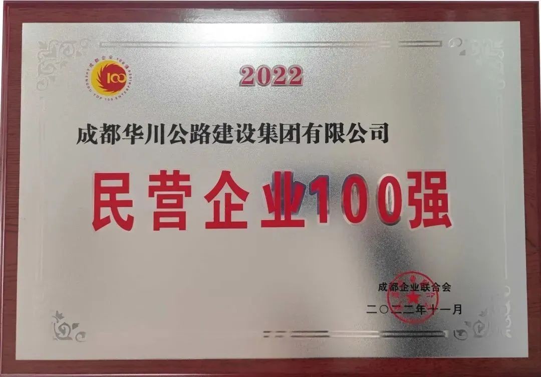 華川集團(tuán)榮獲2022年度“成都市民營企業(yè)100強(qiáng)”