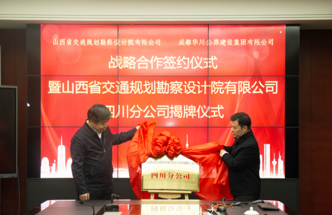 簽約儀式后,舉行山西省交通規(guī)劃勘察設(shè)計院有限公司四川分公司揭牌儀式,集團董事長、總經(jīng)理、黨委書記謝應(yīng)文受邀揭牌。