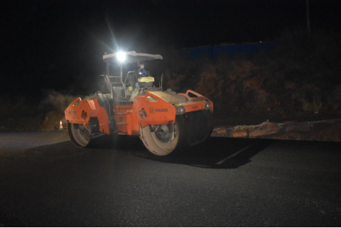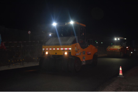在各施工現(xiàn)場,不懼嚴寒、熱火朝天。攤鋪機、壓路機、運料車等各類施工機械一派繁忙,全體人員履職盡責、分工協(xié)作,各項施工作業(yè)有序進行著。項目領導班子工作重心前移生產(chǎn)一線,實行現(xiàn)場辦公,第一時間解決施工重難點,日夜巡查督導質量安全、施工進度、材料保供等工作內容,確保項目生產(chǎn)高效推進;工程人員加強前后場的相互配合、按需供料,保證施工不間斷;5+2、“白+黑”、雨加晴,24小時堅守崗位、奮戰(zhàn)一線,嚴格按照施工技術及標準規(guī)范高標準、嚴要求開展每天的施工任務;時刻緊盯每一個施工環(huán)節(jié),嚴格控制施工質量,一一落實混合料配合比、溫度、厚度、寬度、攤鋪、碾壓等質量控制要點,確保攤鋪、碾壓等工序的有序銜接;同時強化安全規(guī)范操作,嚴防各類安全事故發(fā)生。