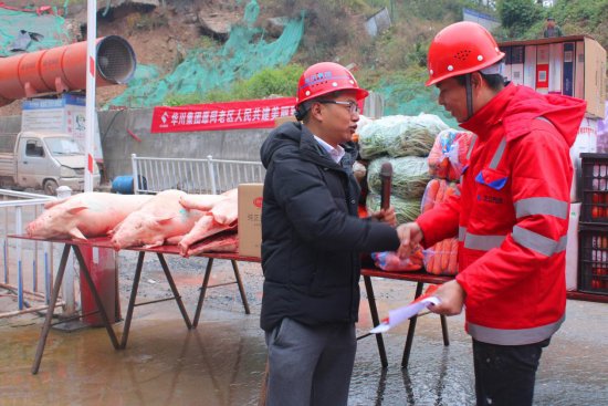 上午8點30分,縣委書記孫輝一行從隧洞進口端通行來到出口端儀式現場并對全體參建者及監(jiān)理代表表示了祝賀。儀式上,副縣長羅旭輝代表中共通江縣委、縣人大、縣政府對全體參建者一年多來的辛勤付出表示了感謝,羅副縣長在講話中說道:春在隧道項目是通江縣重要的民生工程,是老區(qū)人民期盼已久的幸福路、致富路、經濟路。隧道右洞的貫通是地方政府與華川集團共同努力的結果、是服務老區(qū)人民的重要舉措、是給地方百姓送上的新年禮物。隨后,力迅公司董事長蘇川對全體參加者表示了祝賀,并就加快隧道施工進度、做好質量安全管控、建設人民放心的品質工程等方面對后續(xù)工程施工作出了指示。